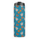 Pattern of cookies and buns a cup of tea cherry coffee seed on blue background sweet