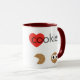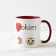 Love cookies cup Met een rood hart. Afgebeeld staan 2 koekjes. 1 met 2 grote ogen en de andere die al voor een deel is opgegeten.