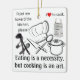 In my hobby collection, this product displays a love of cooking. In the top left corner are the words: Point me toward the kitchen, please! In the top right hand are the words: I heart (love) to cook. Across the bottom of this item are the words: Eating is a necessity, but cooking is an art. In the center are cooking utensils such as a chef's hat, a pot, a knife and spoon, a grater and a ladle, tongs, spatula and slotted spoon.