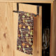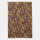 Fun implements and tools of the kitchen are collaged on a handy kitchen towel for a modern and practical pop of whimsy in your kitchen. Spatula, whisk, spoons, forks and knives all combine for a playful bit of muted retro colour in shades of sage green, terra cotta, gold, umber and brown.