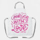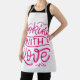 This apron design showcases the heartfelt phrase "Cooking with Love" in elegant typography, accented with charming kitchen-themed graphics. A perfect choice for passionate cooks, it adds warmth and personality to your culinary adventures.