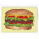 Greeting card features an original marker illustration of a hamburger topped with lettuce, tomato, and cheese, printed on a yellow background.