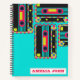 Trendy retro 90s and 80s Audio Mix Tapes Cassettes black pink blue and yellow pattern personalised neon blue spiral notebook. This notebook can be easily edited with your name.