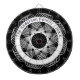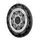 Elevate your games room with this intriguing dartboard. The board features an intricate geometric pattern in white on black, with curved lines creating a detailed line art design. The effect is like a crochet lace mat or a beautifully symmetrical abstract flower. Personalise with with your name(s) and the year for an individual finishing touch.