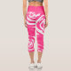 Cool Abstract Pink Rose White Floral Pattern Capri Leggings