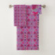 Cool Abstract Retro Hot Pink and Red Floral Swirl Bath Towel Set