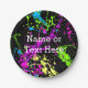 Cool Abstract Retro Rainbow Paint Splatter Black Paper Plate