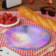 An elegant paper plate with a nice combination of soft pastels and bright colours. A colourful abstract painting with a cosmic space image in pink, purple and yellow watercolors. The colours blend and mix together creating luminous ethereal clouds with little twinkling stars peppered throughout.