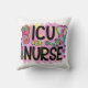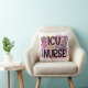 Cool and Colourful ICU Nurse design throw pillow features a stethoscope, needle, hearts, bandage, cup of coffee, and text that reads ICU Nurse, great for all the ICU nurses out there!