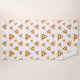 Cool and fun pizza slices pattern on white summer gift beach towel. Juicy vector made pizza with crunchy crust, cheese, salami, champignon mushrooms, olives and a sprinkle of oregano.