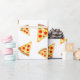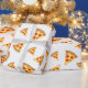 Cool and fun pizza slices pattern on white - unique gift wrap for foodies, restaurateurs, pizzerias, celebrations, birthdays.. Juicy vector made pizza with crunchy crust, cheese, salami, champignon mushrooms, olives and a sprinkle of oregano.