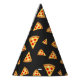 Cool and fun pizza slices pattern on dark grey. Juicy vector made pizza with crunchy crust, cheese, salami, champignon mushrooms, olives and a sprinkle of oregano.