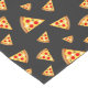 Cool and fun pizza slices pattern on dark grey. Kids pizza party birthday kitchen linens table runners. Juicy vector made pizza with crunchy crust, cheese, salami, champignon mushrooms, olives and a sprinkle of oregano.