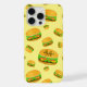 Cool and fun yummy burger pattern Monogram iPhone 15 Case. Personalise unique phone case with your initial and name.