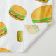 Cool and fun yummy burger pattern white Wall Tapestry. Cool and fun burger pattern on custom background. Yummy vector illustration made with toasty sesame bun with meat patty, salad, tomatoes and cheese.