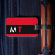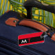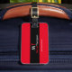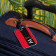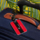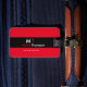 Cool and modern red and black striped luggage-tag to identify your baggage at the airport... personalised with name and initials...
