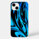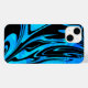 Vibrant aqua blue and solid black creates a liquid wave swirl pattern that is a modern, playful and cool look on this phone case.