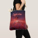 Cool astrology tote bag with a beautiful image of the space. Personalise for your own star sign. Script lettering in peachy beige colour to match the shown galaxy!