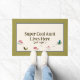 Fun customisable door mat features "Super cool Aunt lives here" and "just sayin' ..." text with simple floral elements and framed background. Personalise for your favourite aunt, friend or other special person.