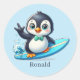 Cool beach surfing penguin add name classic round sticker