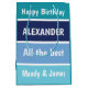 Funny blue striped birthday wishes design. Click personalise and edit text.