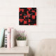 COOL Black and Red Stylish Abstract Pattern Square Wall Clock