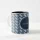 Cool Blue Chevron Pattern Monogram Two-Tone Coffee Mug