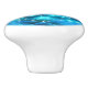 A ceramic knob with a Christmas tree decorated with vibrant electric-blue holiday lights. Sparkling and glittering with festive joy.