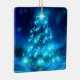 Christmas ornament with a Christmas tree decorated with vibrant electric-blue holiday lights. Sparkling and glittering with festive joy.