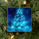 Cool Blue Christmas Tree with Sparkling Lights Ceramic Ornament