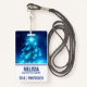 Cool Blue Christmas Tree with Sparkling Lights ID Badge