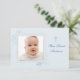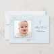 A whisper-soft blue, contemporary, flat, notecard featuring abstract swirls and your sweet baby's photo on the cover. The cross on the front can be dragged to any location, made smaller or larger, or eliminated making this a versatile card for any occasion.
