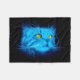 Cool Blue Neon Cat Art - Glowing Animal Design Fleece Blanket