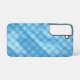This phone case features a stunning design of deep and light blue tones, reminiscent of water and sky. White diagonal lines streak across the surface, giving the impression of light penetrating a tranquil body of water. The unique quilted-like texture adds depth and dimension, creating a dynamic visual effect that shifts with the light.