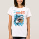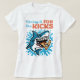 This design features a cool blue shark and a victim kicking and splashing in its jaws. Above are words, “Doing it for the kicks.” This shark is having so much fun, especially this busy summer. Who knew humans could be so much fun?