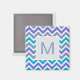 Cool Blue Sporty Chevron Pattern Monogram Magnet