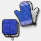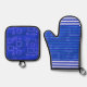 Cool Blue White Geometric Stripes Oven Mitt & Pot Holder Set