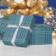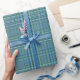 Cool Blue Woven Plaid Pattern Wrapping Paper