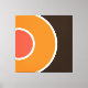 This vibrant, groovy design features two groovy offset colourful nested orange circles, outlined in white, on a bold dark cocoa brown background.
