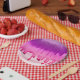 Beautiful pink and purple paper plates.