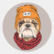 This design features a bulldog portrait in a hipster hat and with Knitted scarf.