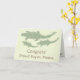 Fun, cut-out images of camouflage green silhouettes of an alligator seen from above as it is crawling and swimming though the imaginary swamp. The background of this image is transparent. You change the background, add or reduce the number of images, change the position and the size of the images, and change the text. Funny congrats card for a proud bayou mom.