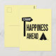 Simple Text graphic design showing a little tent a camp sign and a Text saying: Happiness ahead.