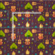 Fabric designed with a cute camping pattern. Camping themed items such as an orange campfire, a green tent, an acoustic guitar and other nature