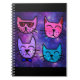 4 different illustrations of some cool cat faces in space. One cat wears some cool shades while the others have their eyes closed and look relaxed, one wears a bow tie. These cats are set on a space background with bright colours and lots of shining twinkling stars in the background.