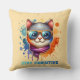 Stylish cartoon cat wearing sunglasses and a scarf with colorful paint splash background. A hipster cat.