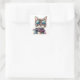 Sticker or decal of a cat with glasses and modern style, ideal for cat lovers and colorful art. Perfect for decorating laptops, planners, bottles, notebooks, or original gifts.