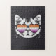 Cool Cat with Lesbian Flag Glasses Funny Sapphic Jigsaw Puzzle