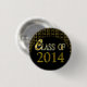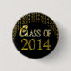 Great, unique "Class of 2014" graduation button pins in a 3d look stylish, classy gold letters and numbers graphic design on contrasting black with a background design of 2014 in a cool repeating pattern. Perfect for the entire Class of 2014 from kids and teens, to men and women graduates and guests of all ages!