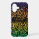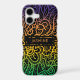 Cool unique personalized iPhone case design featuring hand drawn doodles in gradient rainbow colors on a black background. The text is fully customizable.